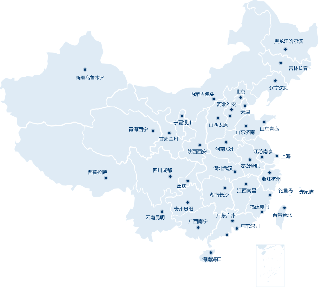 上海區域總部;吉林、山東子公司;安徽、福建、甘肅、廣東、貴州、海南、河南、湖南、湖北、吉林、江蘇、江西、內蒙古、寧夏、青海、山東、陜西、山西、深圳、四川、天津、新疆、雄安、西藏、云南、浙江分公司